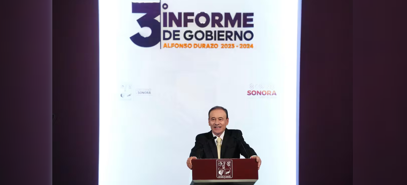 “Mantendremos el ritmo en los siguientes tres años y nos enfocaremos en 10 iniciativas de gran calado”, afirmó el gobernador Alfonso Durazo Montaño, en uno de los puntos del Tercer Informe de Gobierno presentado ante invitados especiales en el Auditorio Cívico del Estado.