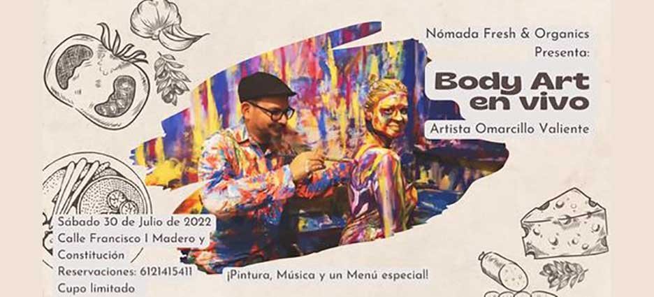 La Paz, Baja California Sur.- Música en vivo, un menú especial y por supuesto muchísimo arte es lo que tiene garantizada la noche de Body Art en vivo con el artista Omarcillo Valiente.